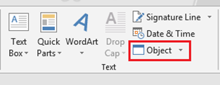 Step 2: Click the Insert menu then the Object option available under Text section.