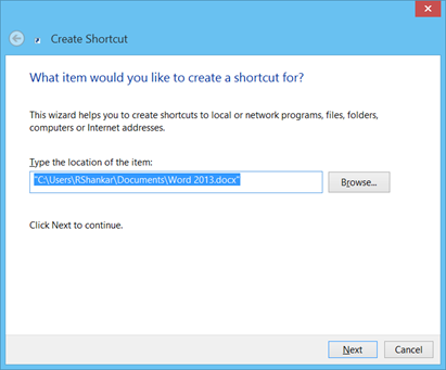 This is in response to the query posted by user, regarding the steps for creating shortcut to a word file.